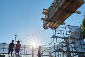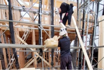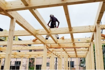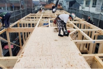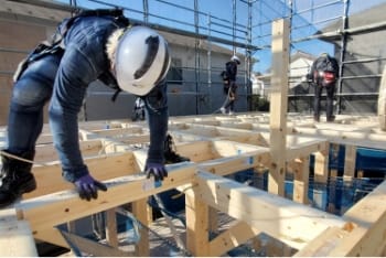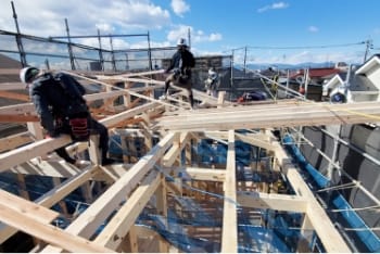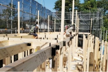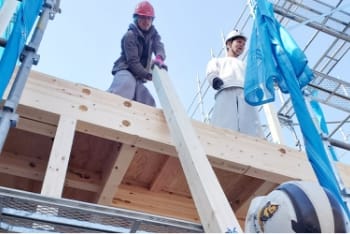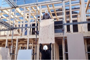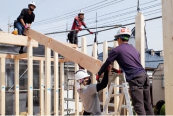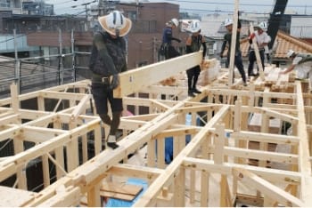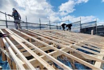上棟工事とは、木造物件の新築工事に必要な仕事で、柱や梁、棟木(屋根部分)を組み立てる作業となります。木造物件のカタチを造っていく重要な業務で、「棟上げ工事」「木造建方工事」とも言われております。荷揚げ作業と合わせて、ご相談・ご依頼いただくことも可能です。